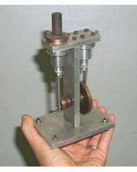 以上の板材と円柱の作図を組み合わせれば,一見複雑に見える機械でも簡単に立体図を描くことができる。右図の模型スターリングエンジンの立体図では,3本の軸を利用して板材が作図されており,楕円と直線の組み合わせで円柱形状の部品が描かれている。