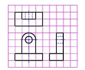 【課題B】図3の三面図から,斜投影図を作成しなさい。ただし,1目盛りを10mmとする。