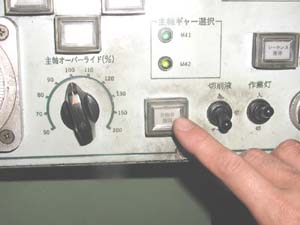 以上の設定を終われば,手動で主軸を回転させることができます。正転ボタンを押すと主軸が回転し,停止ボタンを押すと主軸が止まります。