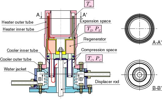 The shape of a displacer and its assembling method affect a size of a regenerator. Wire gauze made of brass (#100, diameter of 0.1 mm, 70 sheets) was used as a regenerator matrix.