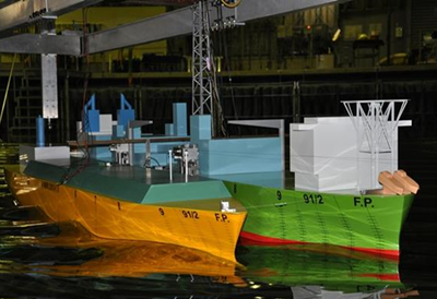 Figure 6 Model experiment for wave induced motion during cooperative crane lifting operation