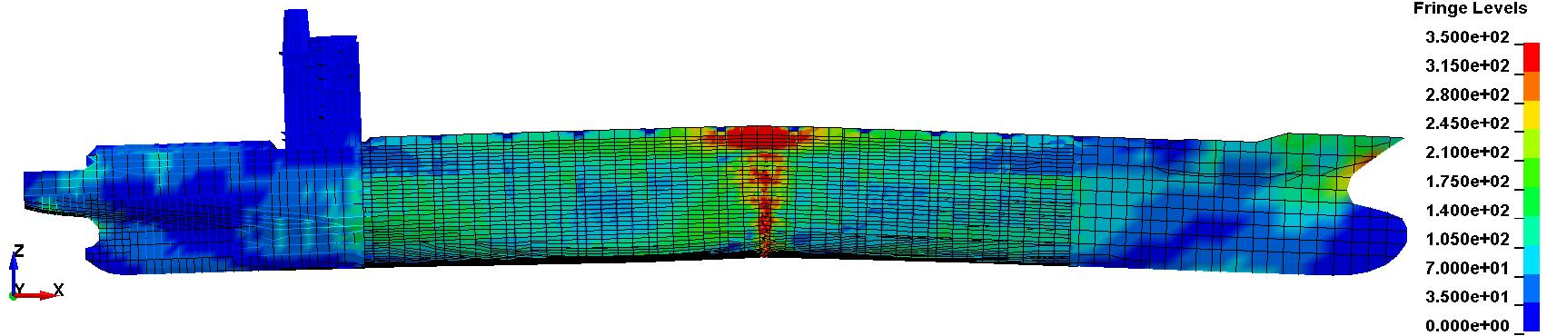 We have newly developed NMRIW-II as a motion/load analysis tool in waves. NMRIW-II (Nonlinear Motion in Regular and Irregular Wave-Integrated Intelligence) is based on the nonlinear strip method and can analyze the nonlinear ship response, including slamming and whipping under various wave conditions. The load obtained by this tool can be transferred to the structure analysis seamlessly on the DLSA interface.