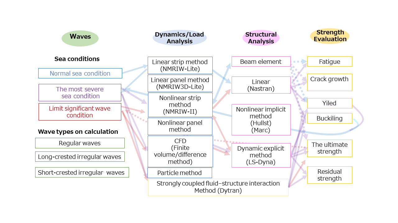 This group conducts research on analysis technology necessary for ship structural safety evaluation and development of whole ship direct load and structural analysis system.