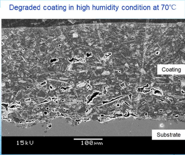 Thick anti-corrosion coatings protect ballast tanks in ships and offshore structures. We have evaluated the degradation process of such coating by EIS (Electrochemical Impedance Spectroscopy). Since it takes a long time for thick protective coating degradation to occur, accelerated test methods are also under investigation to carry out a lifetime evaluation in a short period.