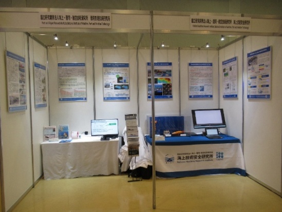 展示ブースにおいて「洋上風力発電プロジェクトチームの取り組み」、「AUV等海洋無人機を利用した次世代の海洋開発」、「海底鉱物資源開発のための開発支援プログラム」、「海技研の施設」について紹介を行い、加えて、AUV模型の展示を行いました。