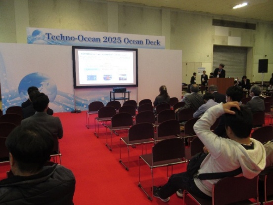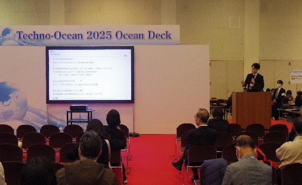 11月27日(木)14:50~15:05に「自律型水中ロボット群による海洋調査システム」について、海洋先端技術系 水中ロボティクス研究グループ 佐藤 匠 主任研究員が講演を行いました。
