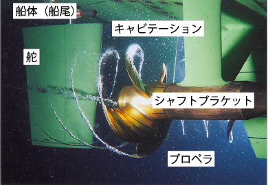 ※キャビテーションとは、液体中の圧力が急激に下がることで局所的に液体が沸騰し、気泡が発生・崩壊する現象です。プロペラにキャビテーションが発生するとプロペラが損傷したり、船体の振動が大きくなることがあります。